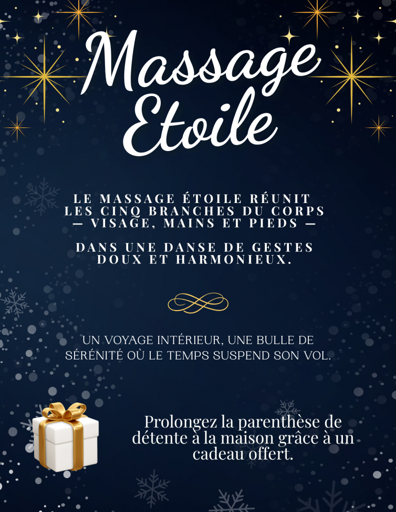 Ce mois-ci, offrez-vous un moment d’exception avec le massage Étoile, une expérience unique qui harmonise les cinq extrémités du corps — visage, mains et pieds — symbolisant les cinq branches de l’étoile. 🌟